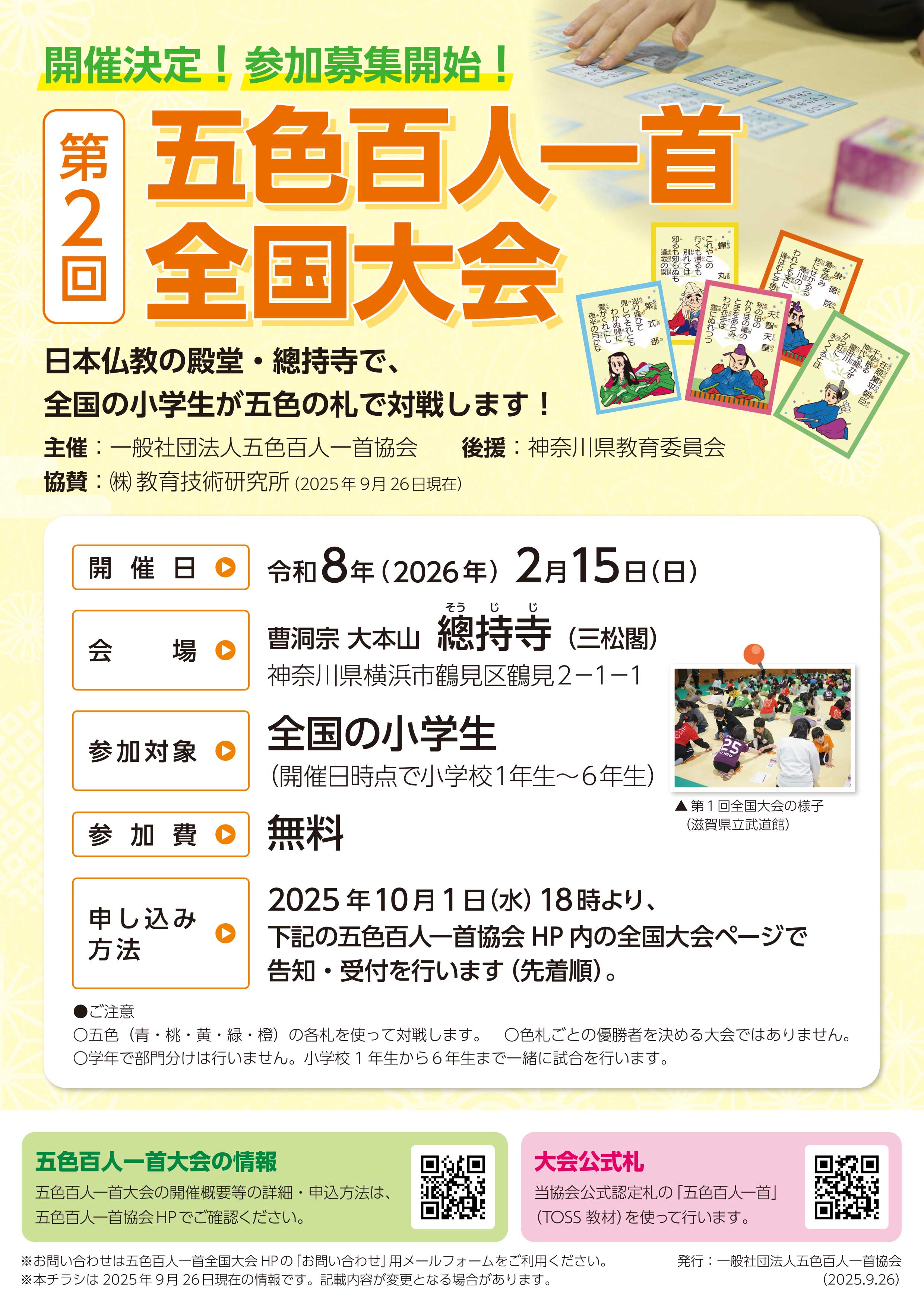 ※五色百人一首の都道府県大会等の入賞経験がなくても参加できます。